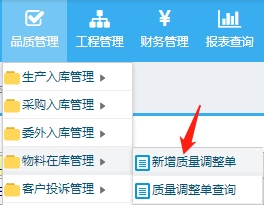 点击选择合格品,下面备注栏上传品检报告,点击提交完成 完成后进入品质管理-物料在库管理-质量调整单查询