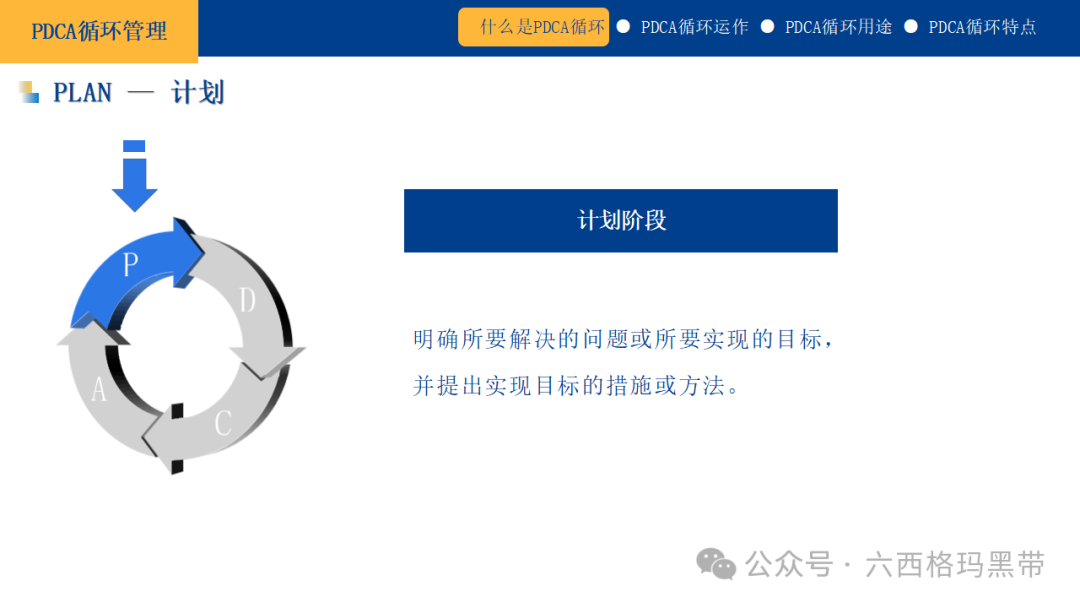PDCA循环随着管理理论与实践的发展,PDCA循环的内涵也在不断丰富和深化,出现了一些新的解释和应用方式,以适应更加复杂多变的管理环境。 计划(Planning)