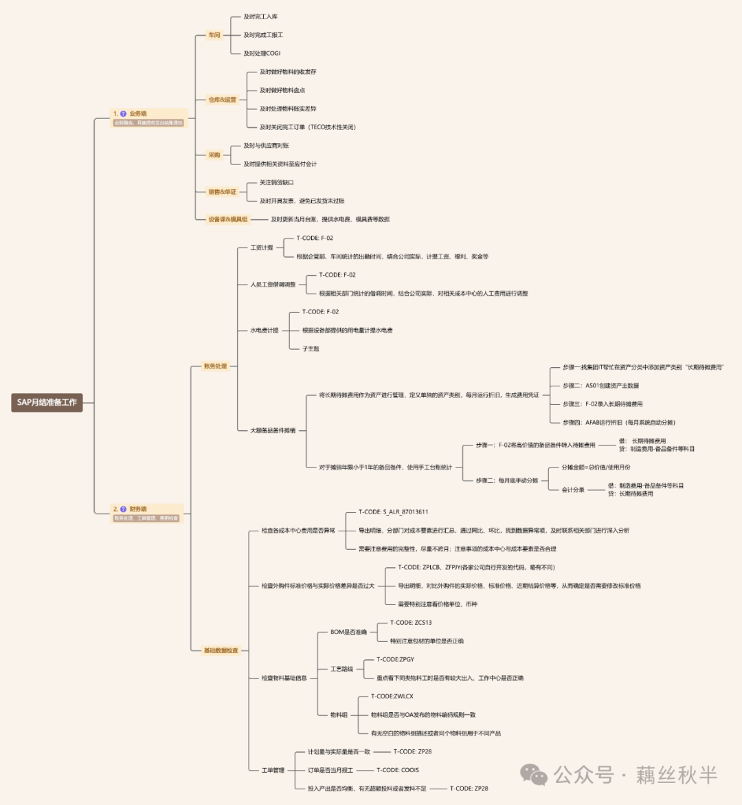 ✔ 如果采购、生产订单的结算跨月,可能导致成本计算异常,建议结账前确保相关模块工作已完成(F.13GR/IR 结算清理/生产订单做TECO技术性关闭)。