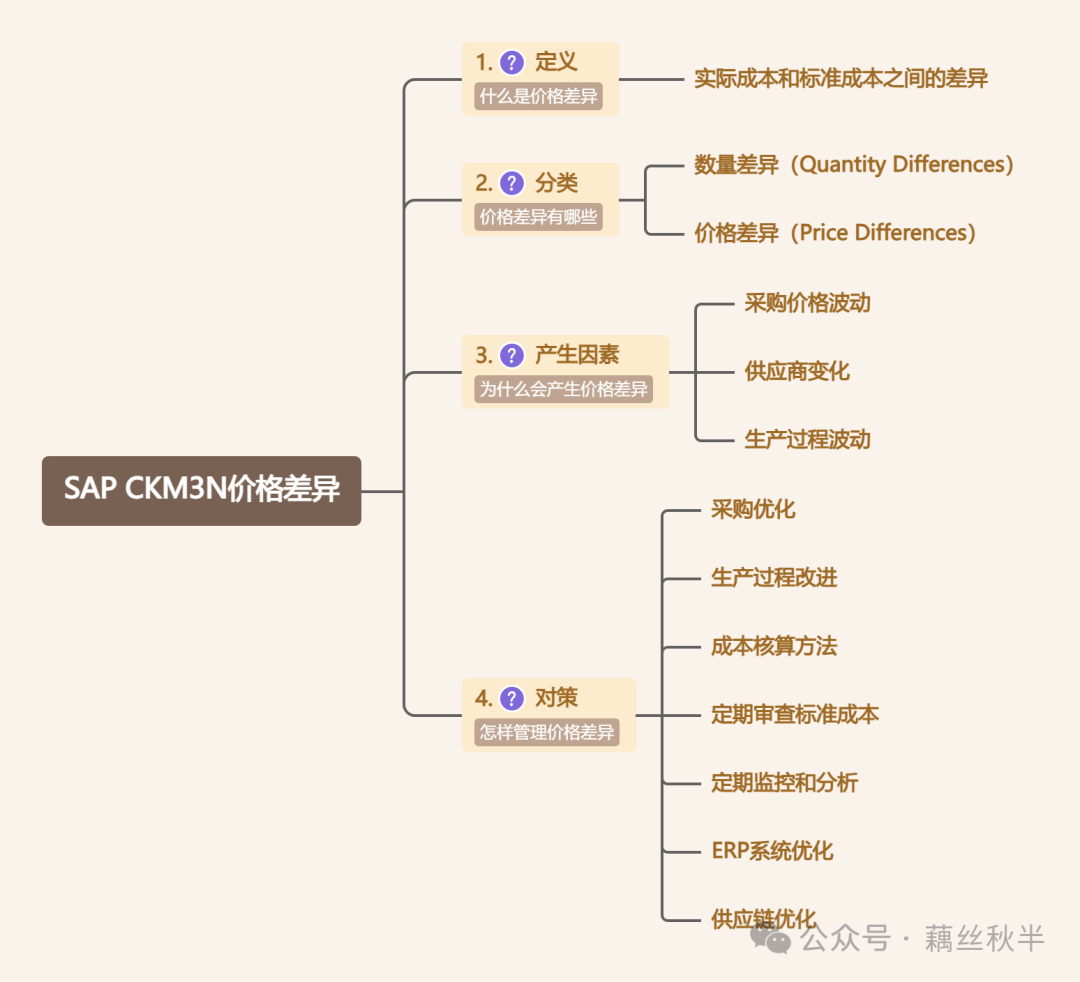 采购差异归集🔄:归集采购价格差异,如标准成本vs实际采购价格的偏差。采购价格差异可能来自:标准价vs实际采购价、采购入库vs发票校验(GR/IR价差)、物料采购汇率变动。