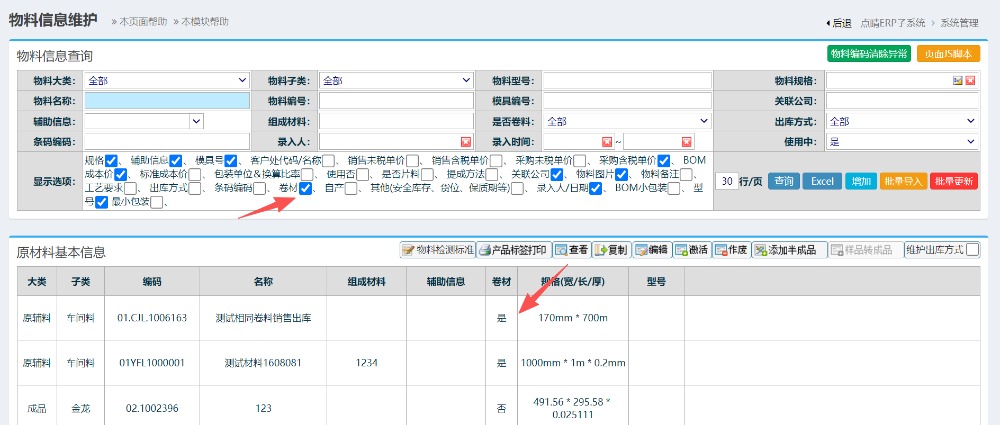 :ERP查询材料是否卷料操作