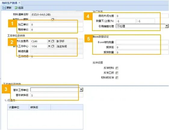 (2)物料生产数据