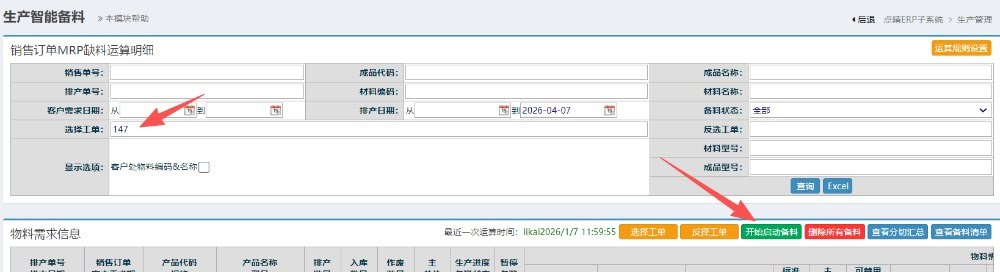 选择后,点击“开始启动备料”按钮操作