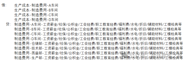 应交税费_应交增值税_待认证进项税额 贷:应付账款_明细应付款_**供应商 4、房租、水费(污水处理费/消防水费/水费)、电费按各部门实际用电量(电表分开,可取数) / 用水量(水表分开,可取数) 或使用面积分摊。 某部门应分摊水电费、租金= 水电费、租金总额 ×(该部门面积 ÷ 全部总面积) 借:制造费用-**车间或部-水电费/租金等 应交税费_应交增值税_待认证进项税额 贷:银行存款-**银行 5、折旧计提