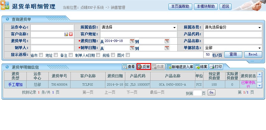 点晴模切ERP销售退货单管理流程—反审.作废销售退货单