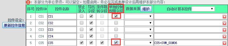 1.4进行控件“禁止录入”“导出字段”“条件跳转”“单独控制权限字段”设置;如下图: