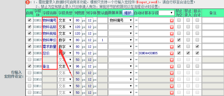 操作步骤:点击勾选“启用行输入宏控件”如下图所示: