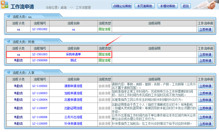 三、工作流申请