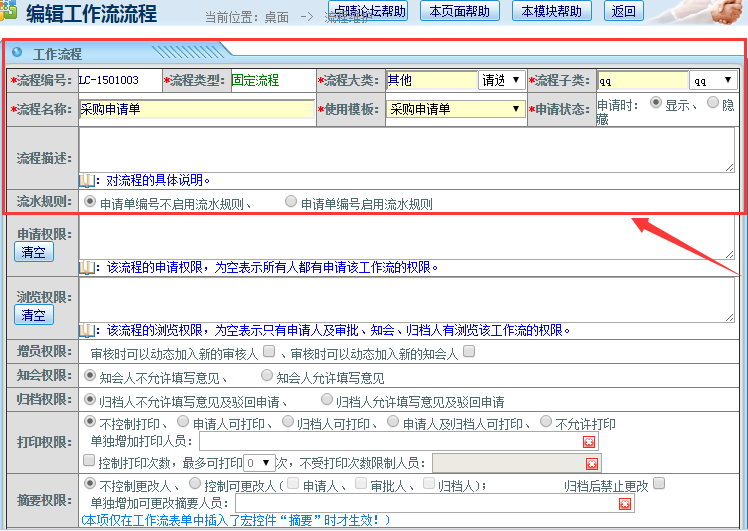 “流程名称”自定义填写;