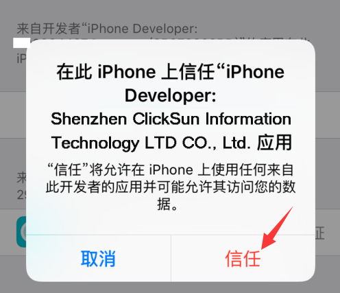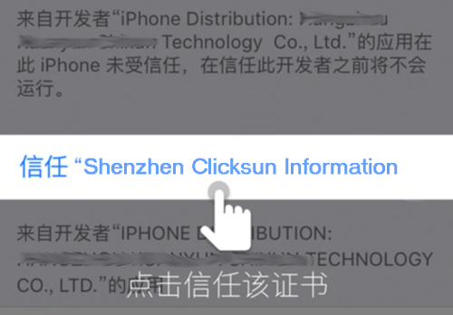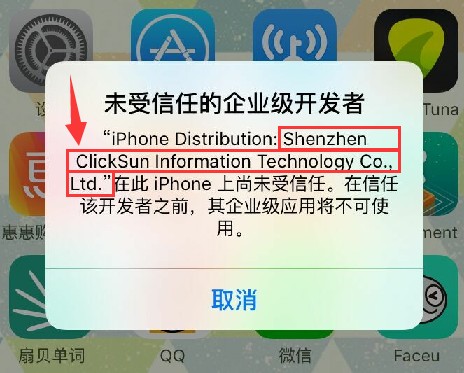 :点晴MIS信息通苹果手机APP安装失败(IOS9版):弹出未受信任的企业级开发者,无法取消,如何解决?