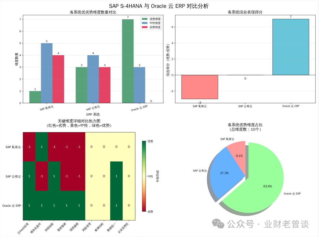 引:这份对比数据由Oracle发布,具体链接见:https://www.oracle.com/erp/oracle-vs-sap/,各位注意甄别。一、围观下Oracle官网的对比:先说Oracle给出的结果:Oracle云ERP在整体表现上显著优于SAPS/4HANA,尤其在云架构、创新能力和业务灵活性方面优势明显,如...