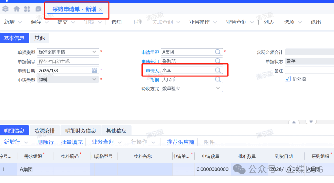 Q问题描述公司入职了新员工小李,是采购部的一名采购员;平时在下采购申请的时候申请人需要选到自己;系统应该要如何添加小李这名员工相关信息?学完本篇文章,您将学会:①如何新增员工信息。②如何新增岗位信息。③如何将员工和岗位信息绑定在一起。