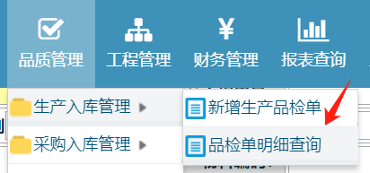 步骤如下品质管理-采购入库管理-品检单明细查询