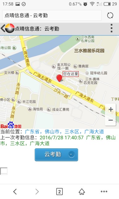 症状说明:目前有个别用户反馈手机云考勤的时候无法定位。 解决方法:如果是本单位所有用户的手机APP/微信版云考勤都不正确,那么应该是点晴OA没有升级到最新版,联系管理员现将点晴OA升级到最新版,最新版升级包下载地址:http://u.oa22.cn 如果只是个别用户的手机APP/微信版云考勤不正确,那么按照以下方法...